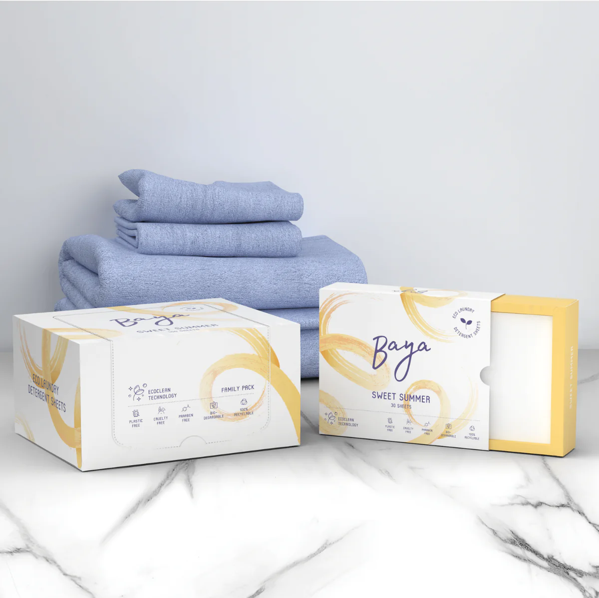 Did you know that up to 90% of liquid laundry detergent is water used as a filler? Baya is perfectly measured and highly concentrated, so you end up saving money.