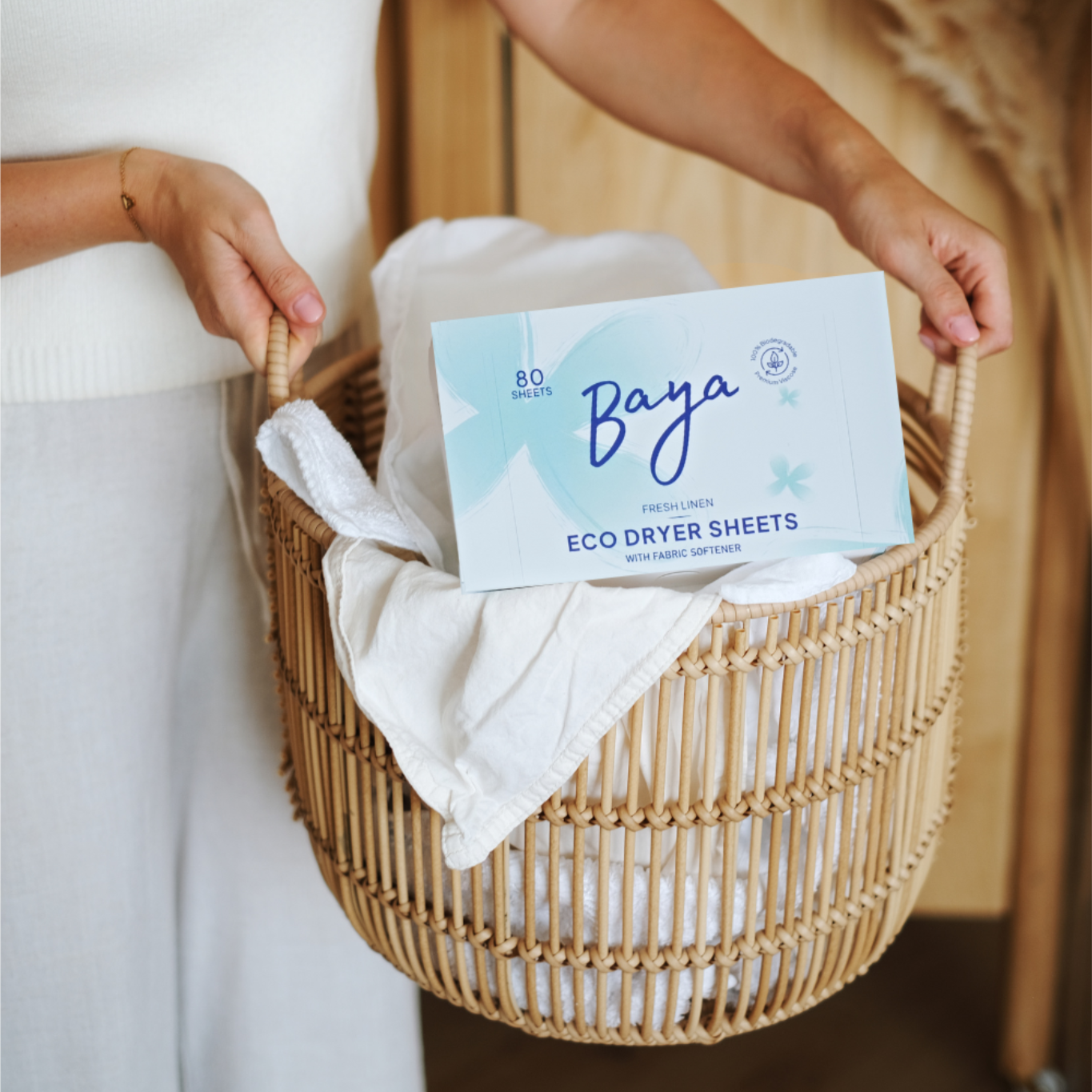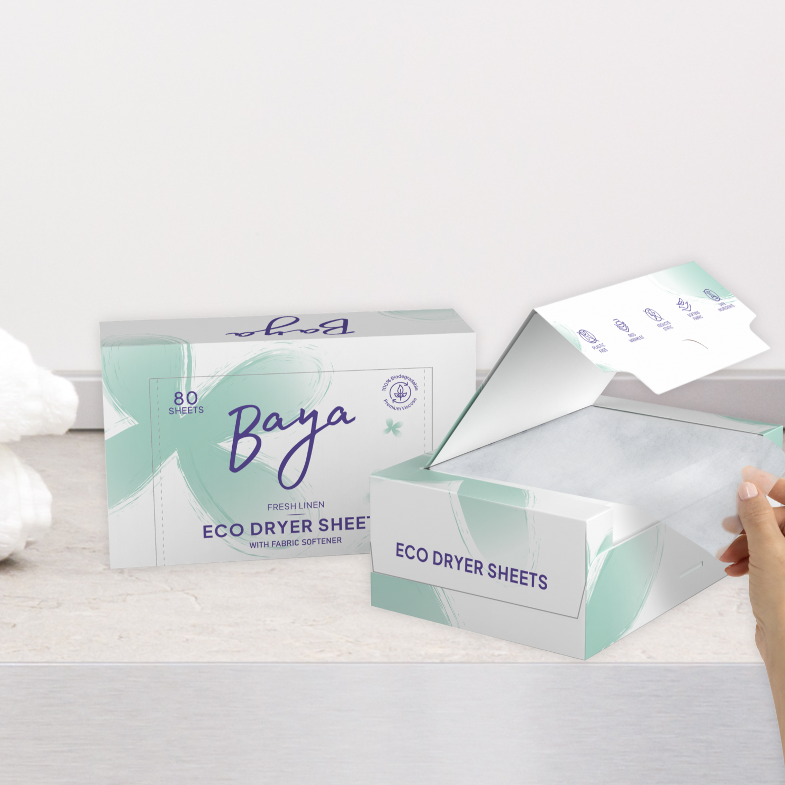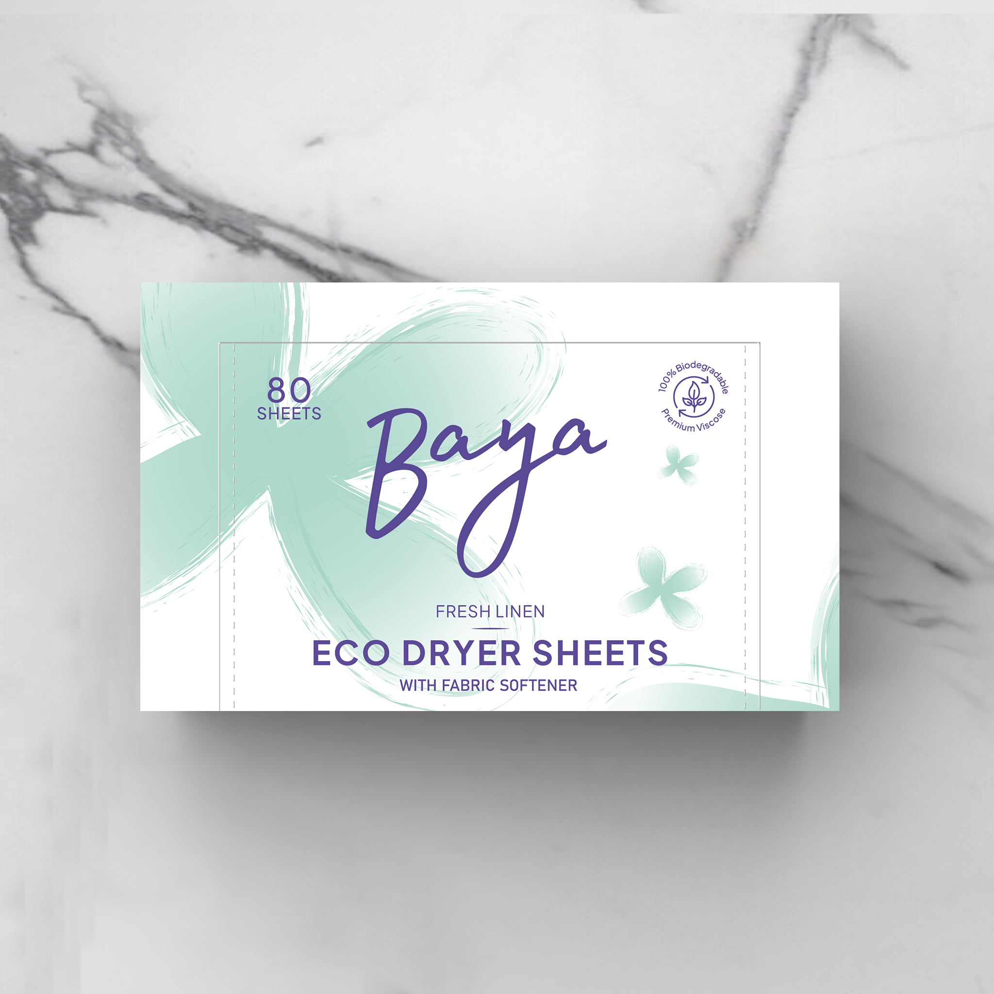 Baya dryer sheets are coated with fabric softener that help to reduce static, soften fabrics, and add a pleasant scent (Fresh Linen). When you place a sheet in the dryer, the heat and tumbling action release the fabric softener, which is then transferred to your clothes, making the laundry soft.